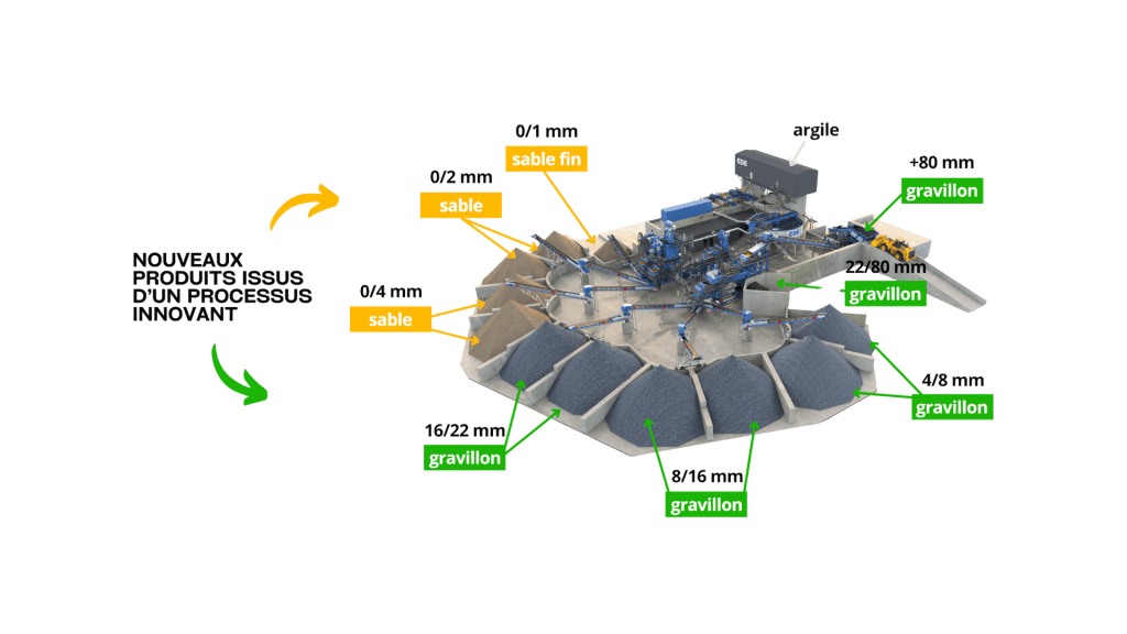 Grâce à un système de double-casiers, nous valorisons également les matériaux naturels tels que les sables, graves et galets.
